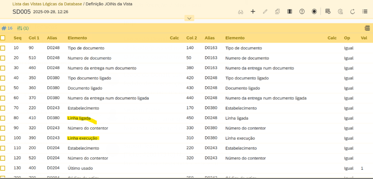 Na criação de vistas o nome do campo do elemento, deveria ter o nome do campo na tabela+traduções. Pois leva a enganos… Sendo necessário abrir o SD002 para confirmar a descrição do campo.